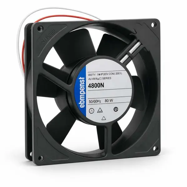 Common in UPS and power-conversion assemblies specifying AMETEK fans. Factory-style connector and footprint help speed service replacement.